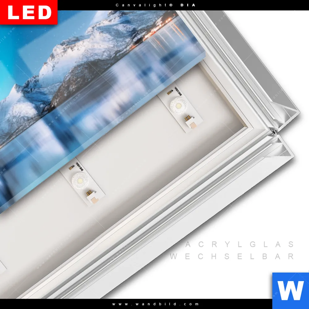 LED-Glasbild mit austauschbarem Acrylglas-Druck (Wechselbild)