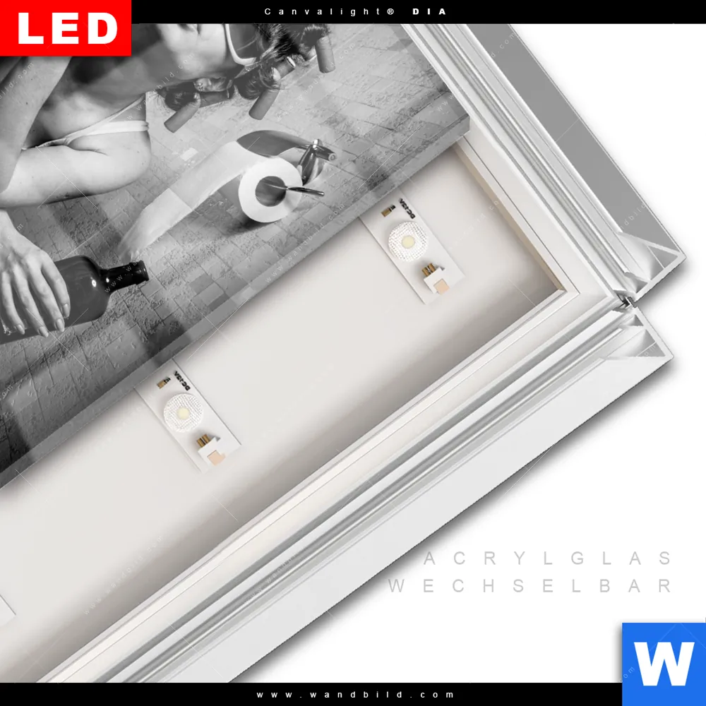 LED-Glasbild mit austauschbarem Acrylglas-Druck (Wechselbild)