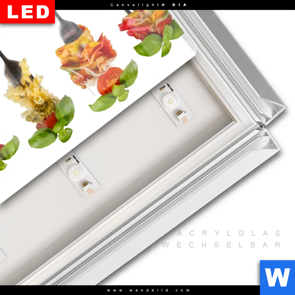 LED-Glasbild mit austauschbarem Acrylglas-Druck (Wechselbild)