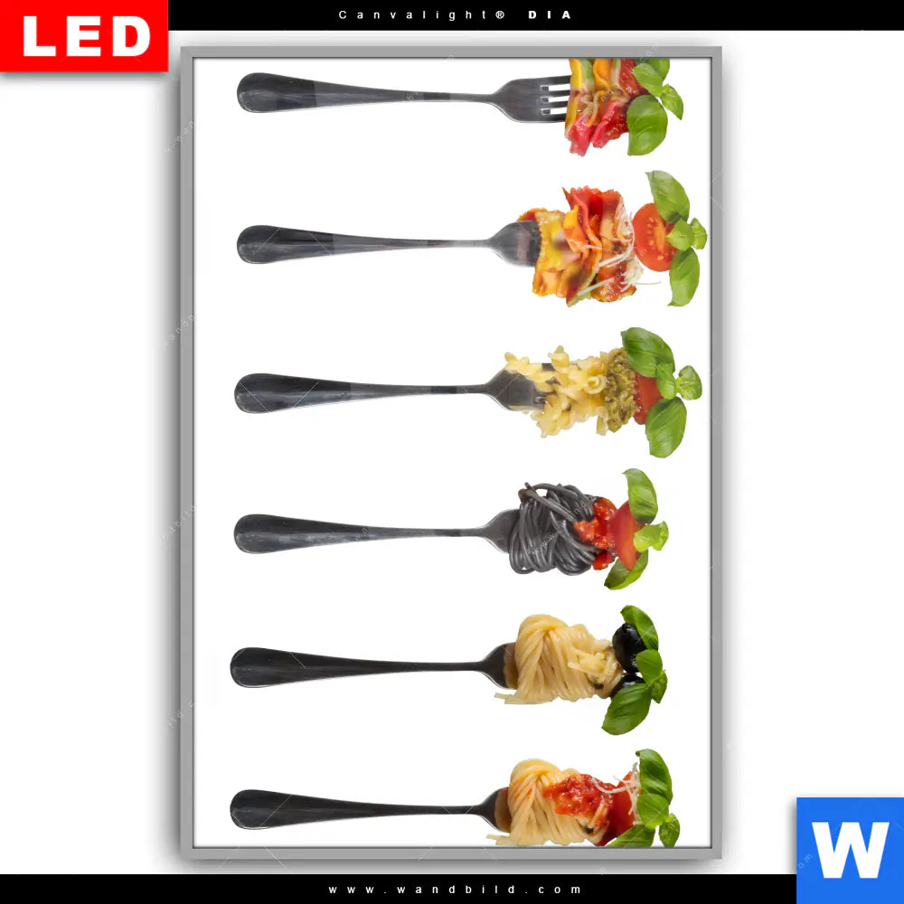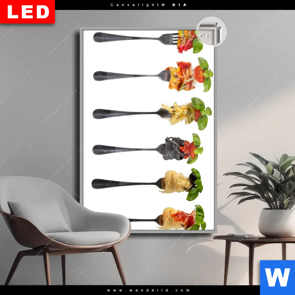 Canvalight® DIA Leuchtbild | Pasta auf Gabeln | Hochformat