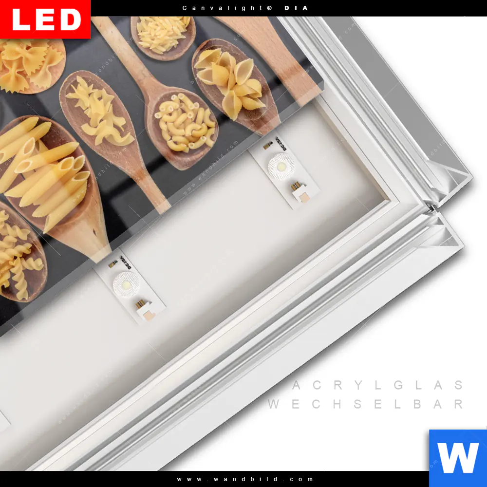 LED-Glasbild mit austauschbarem Acrylglas-Druck (Wechselbild)