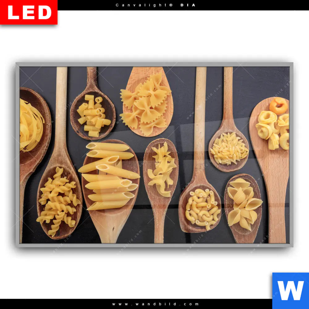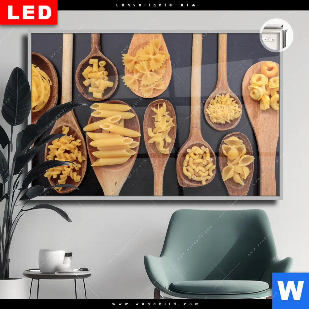 Canvalight® DIA Leuchtbild | Pasta auf Löffeln | Querformat