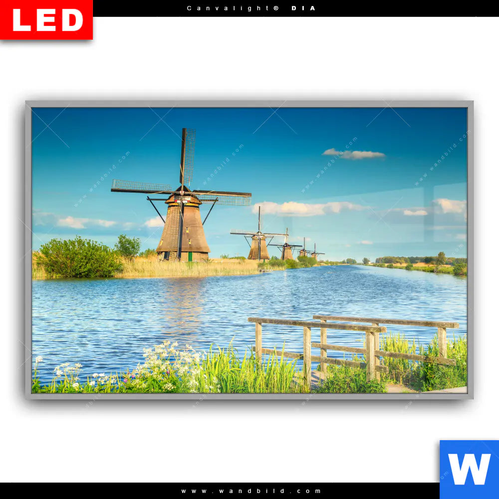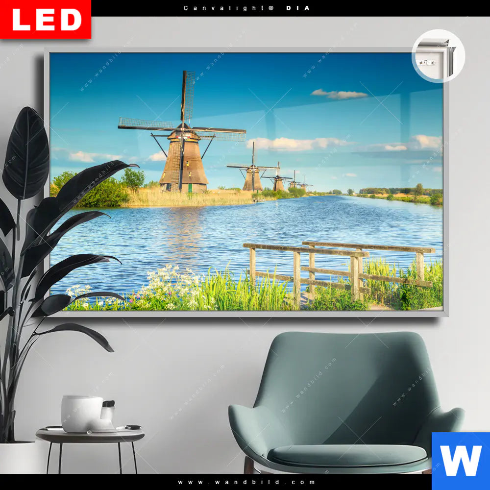 Canvalight® DIA Leuchtbild | Romantik zwischen Windmühlen | Querformat