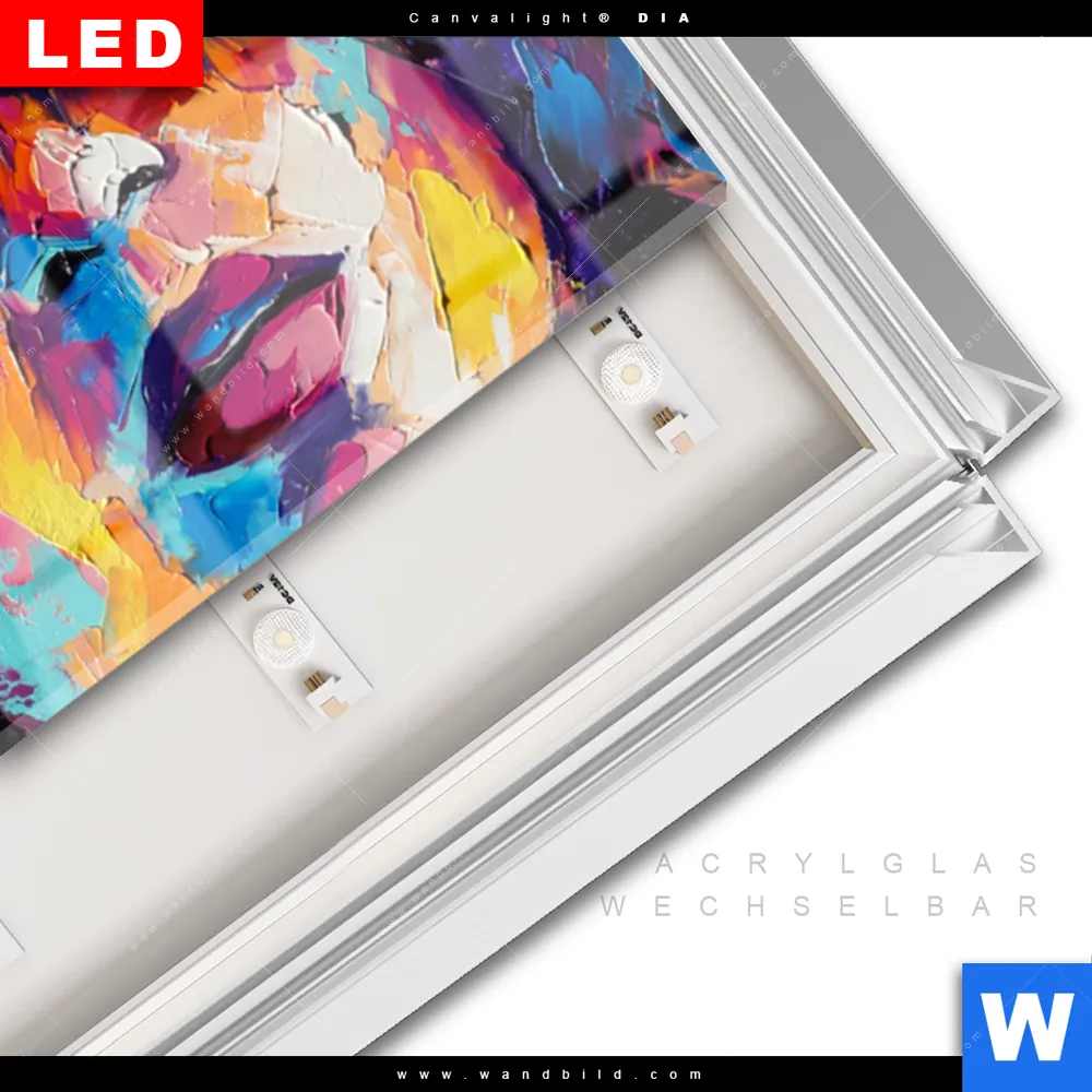 LED-Glasbild mit austauschbarem Acrylglas-Druck (Wechselbild)