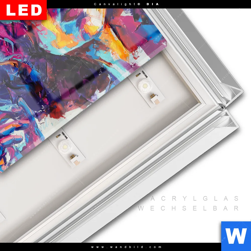LED-Glasbild mit austauschbarem Acrylglas-Druck (Wechselbild)