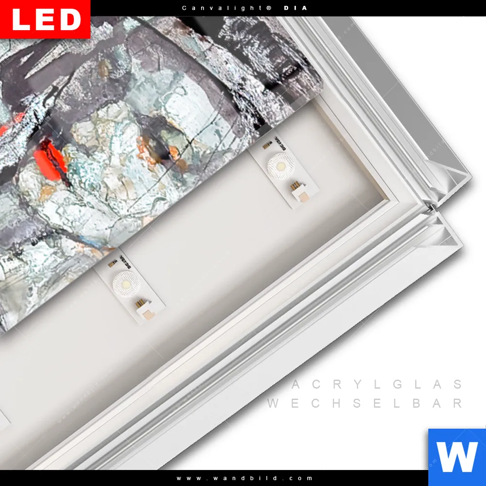 LED-Glasbild mit austauschbarem Acrylglas-Druck (Wechselbild)