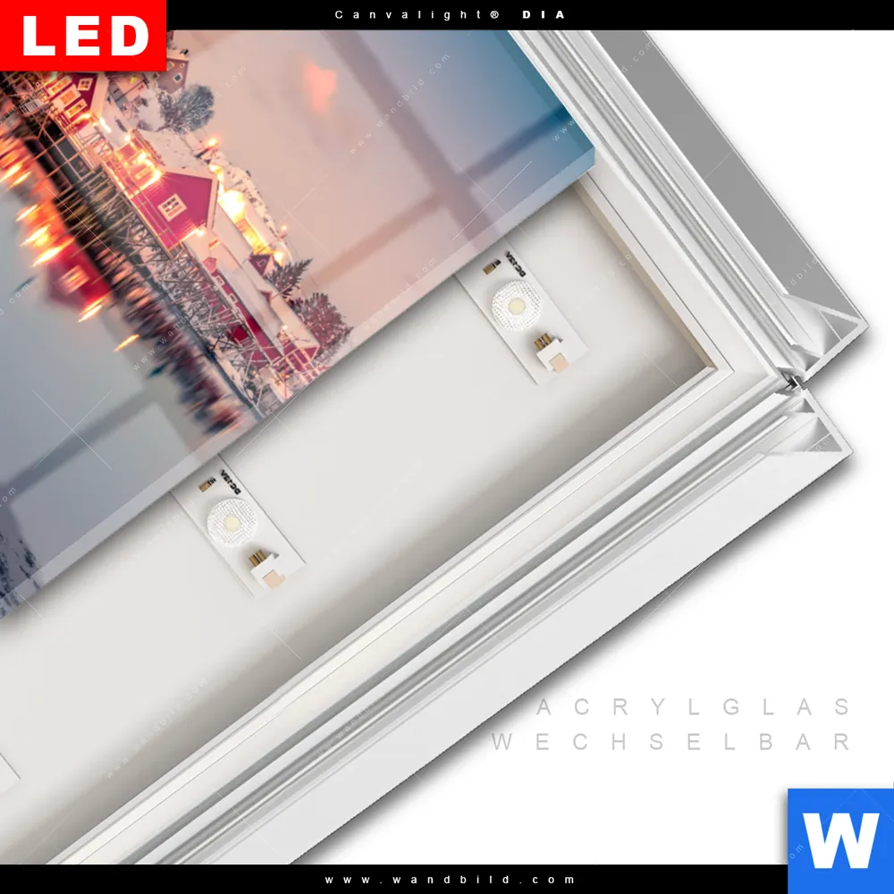 LED-Glasbild mit austauschbarem Acrylglas-Druck (Wechselbild)
