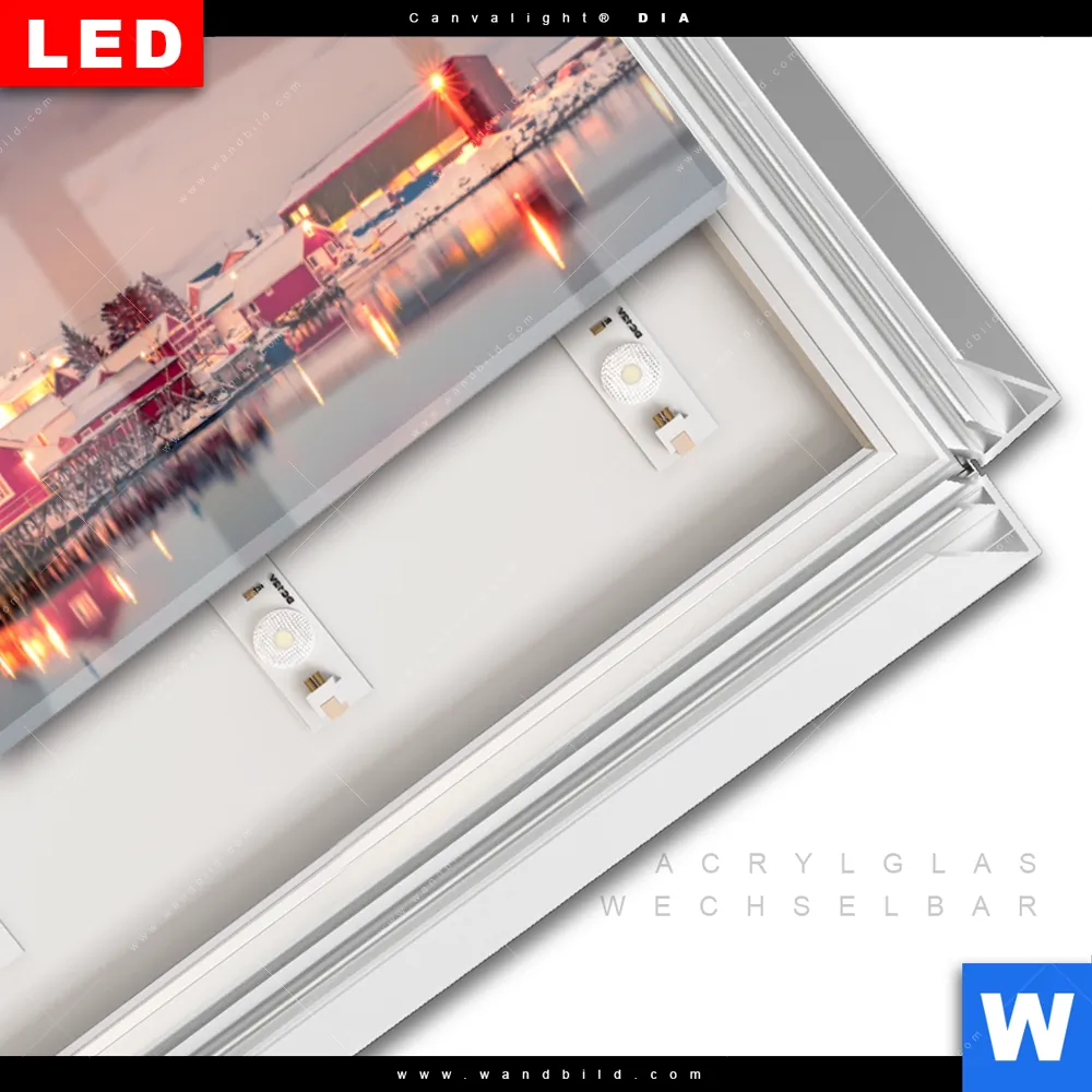 LED-Glasbild mit austauschbarem Acrylglas-Druck (Wechselbild)