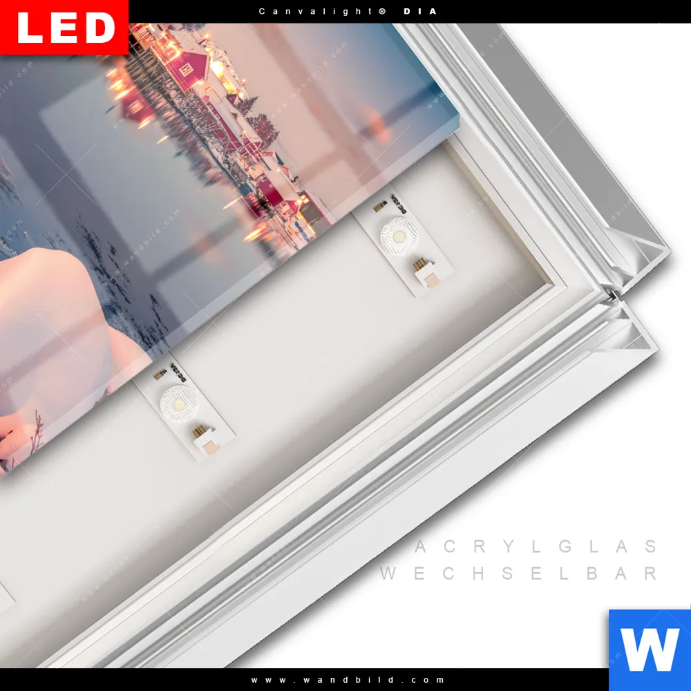 LED-Glasbild mit austauschbarem Acrylglas-Druck (Wechselbild)