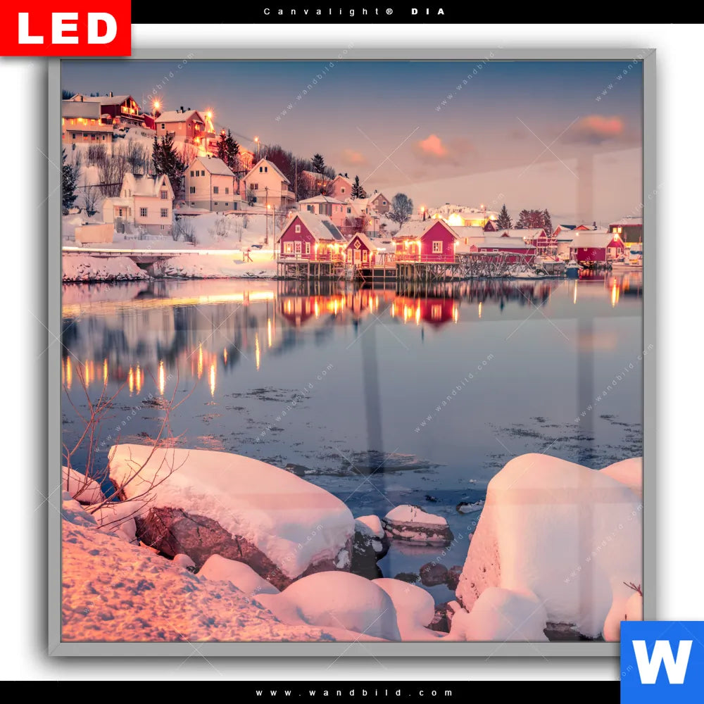 Canvalight® DIA Leuchtbild | Skandinavische Stadt bei Nacht | Quadrat