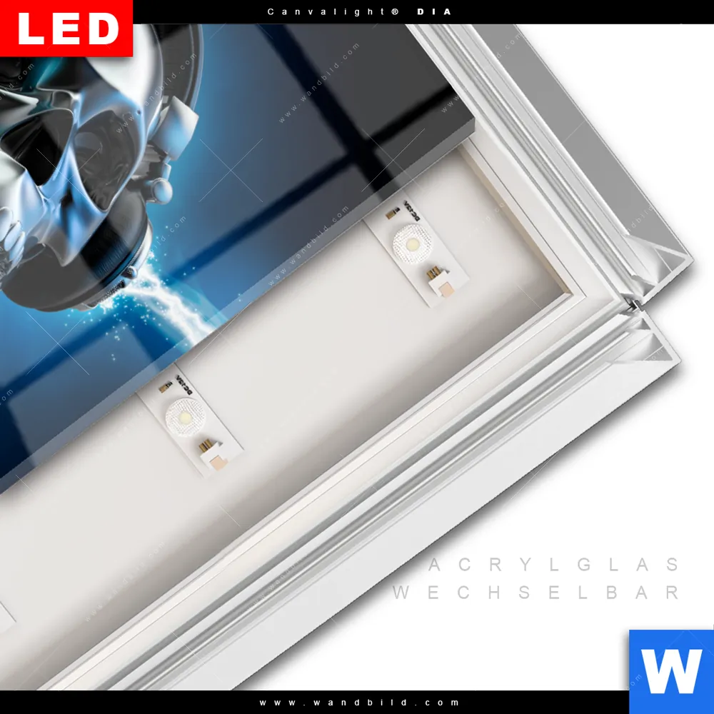 LED-Glasbild mit austauschbarem Acrylglas-Druck (Wechselbild)