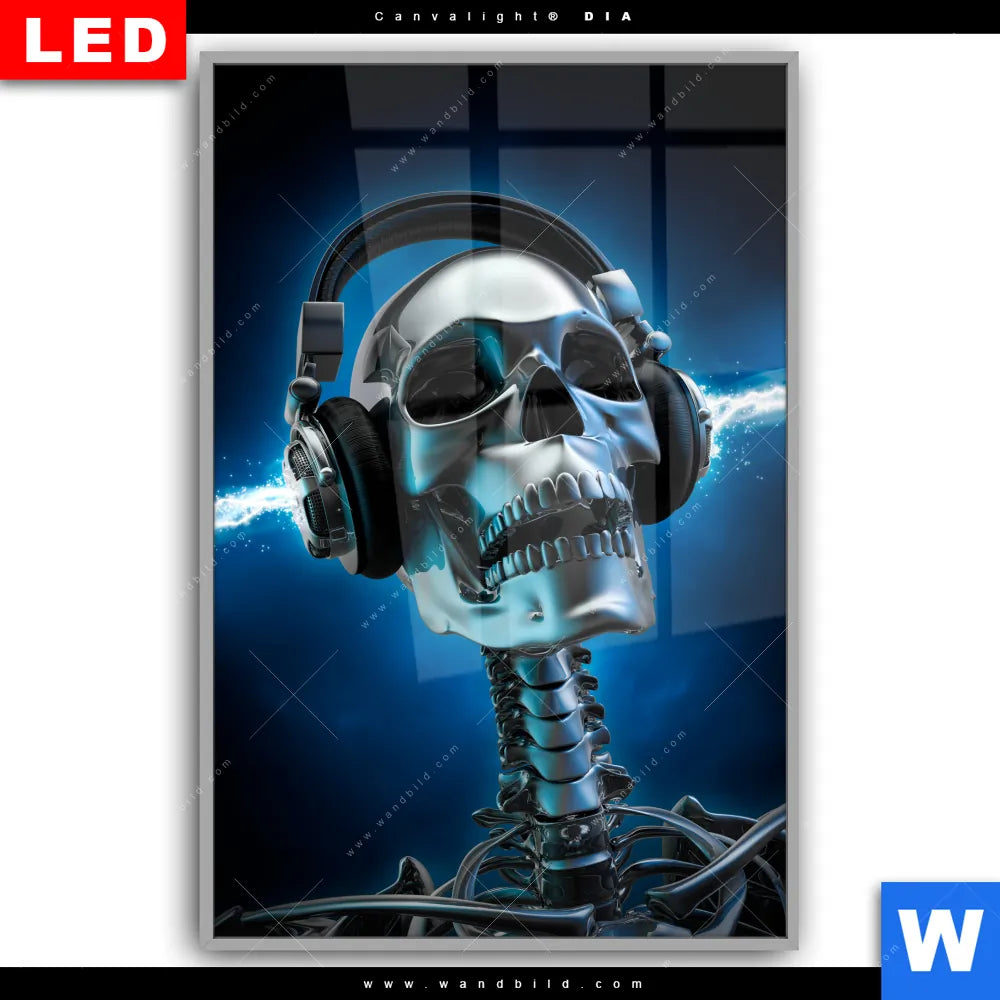 Canvalight® DIA Leuchtbild | Skelett & Kopfhörer | Hochformat