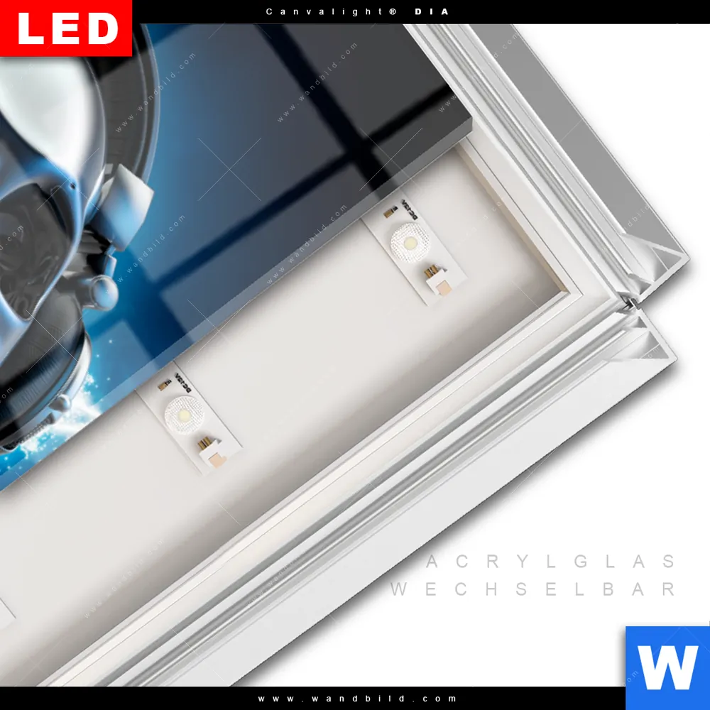 LED-Glasbild mit austauschbarem Acrylglas-Druck (Wechselbild)
