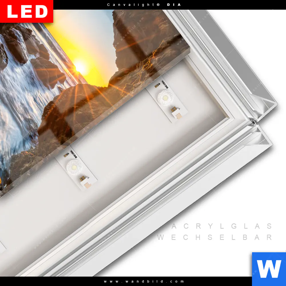 LED-Glasbild mit austauschbarem Acrylglas-Druck (Wechselbild)