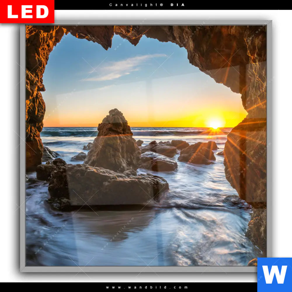 Canvalight® DIA Leuchtbild | Sonnenuntergang in Meeresgrotte | Quadrat