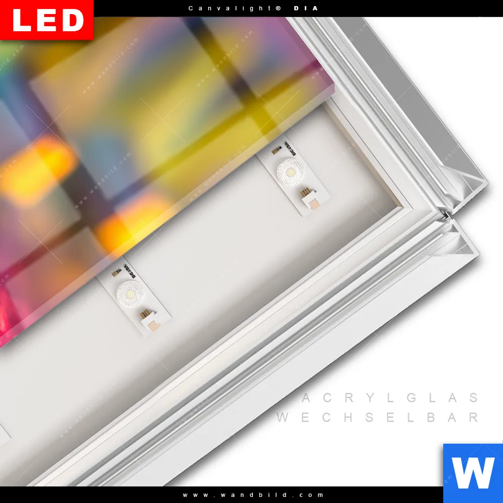 LED-Glasbild mit austauschbarem Acrylglas-Druck (Wechselbild)