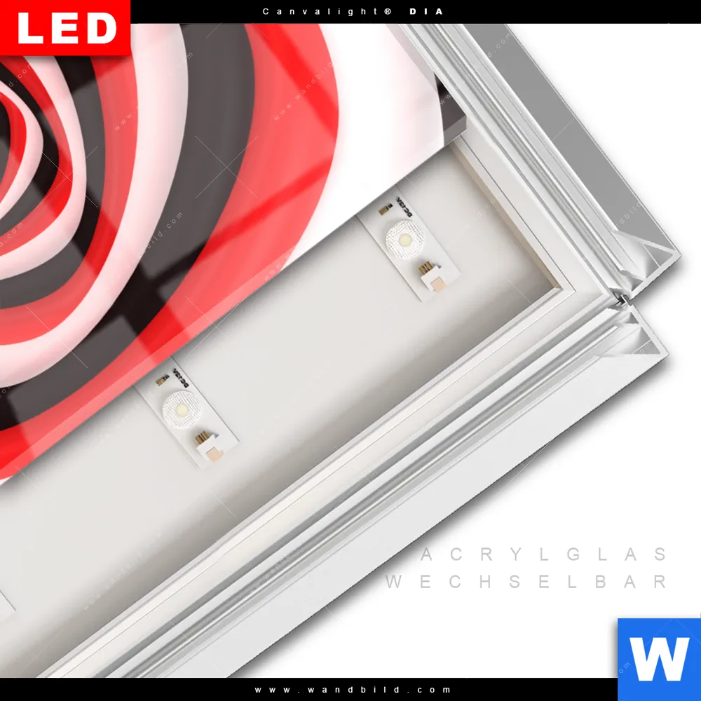 Canvalight® DIA Leuchtbild | Spirale in rot weiß schwarz | Hochformat