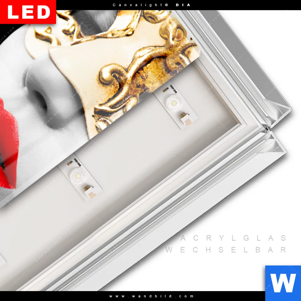 LED-Glasbild mit austauschbarem Acrylglas-Druck (Wechselbild)