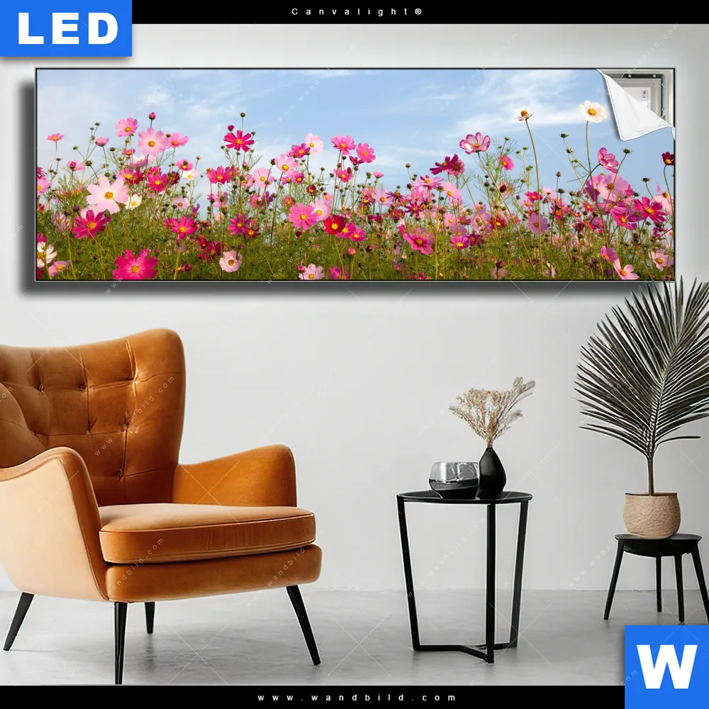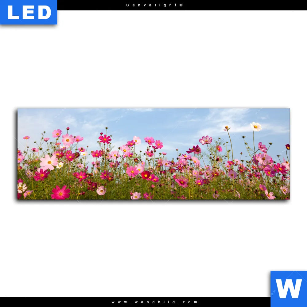 Canvalight® Leuchtbild | Blumenwiese bei strahlend blauem Himmel | Panorama
