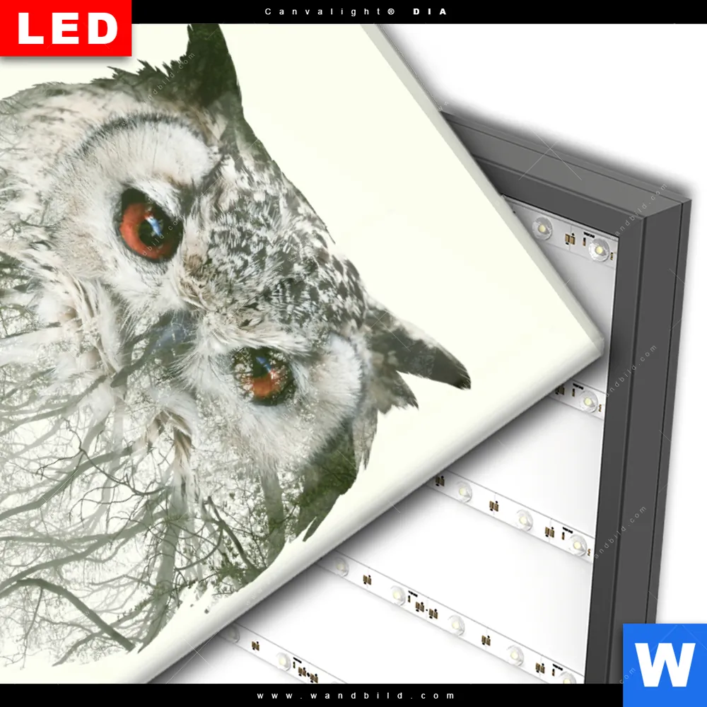 Wechselmotiv Acrylglas Canvalight® DIA | Eule & Wald No.1 | Hochformat