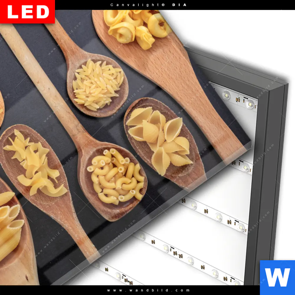 Wechselmotiv Acrylglas Canvalight® DIA | Pasta auf Löffeln | Hochformat
