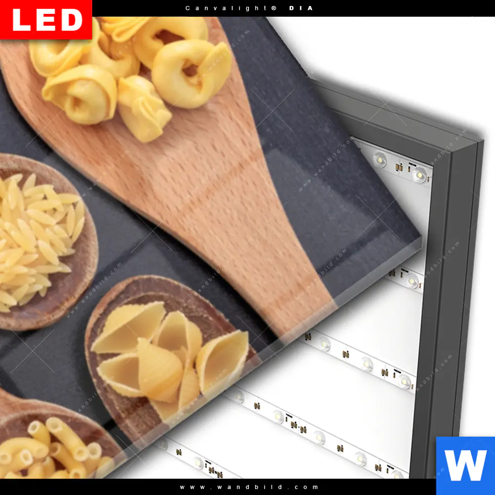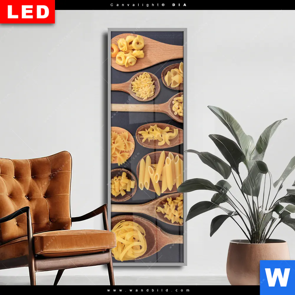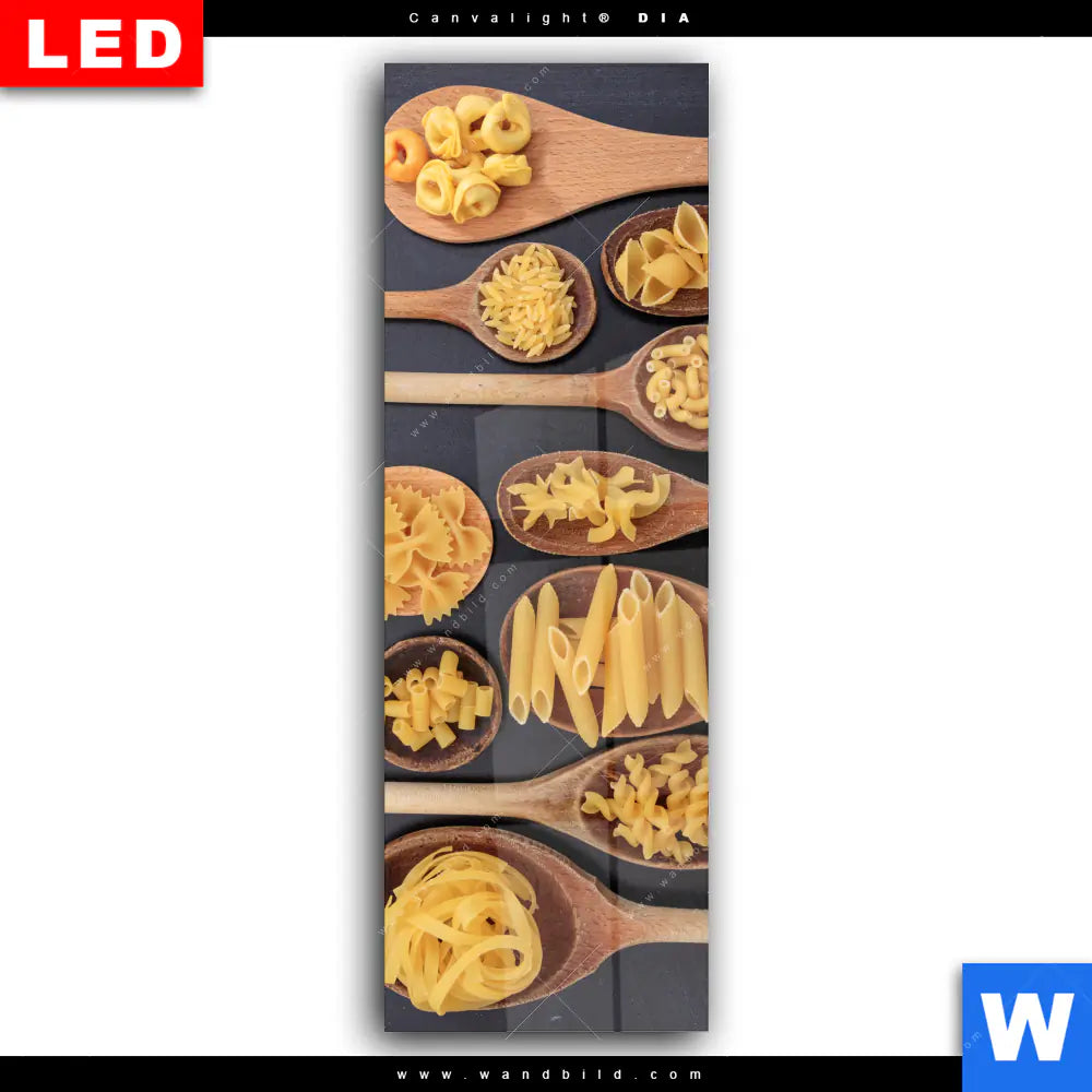 Wechselmotiv Acrylglas Canvalight® DIA | Pasta auf Löffeln | Schmal