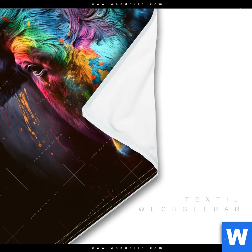 Wechselmotiv Textil | Stier mit bunten Farben | Quadrat