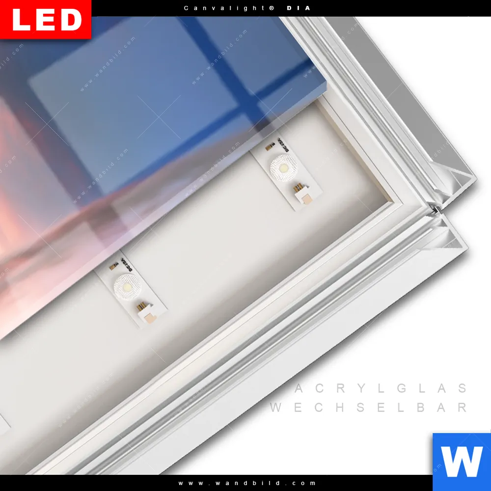 LED-Glasbild mit austauschbarem Acrylglas-Druck (Wechselbild)