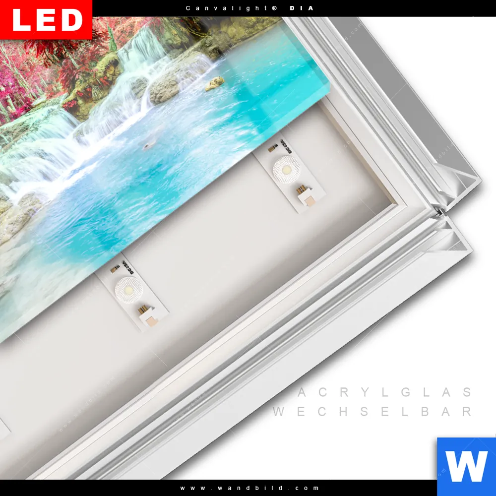 LED-Glasbild mit austauschbarem Acrylglas-Druck (Wechselbild)