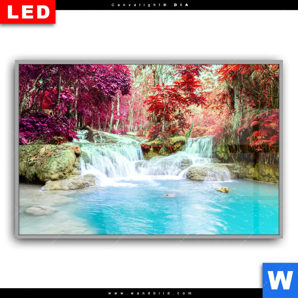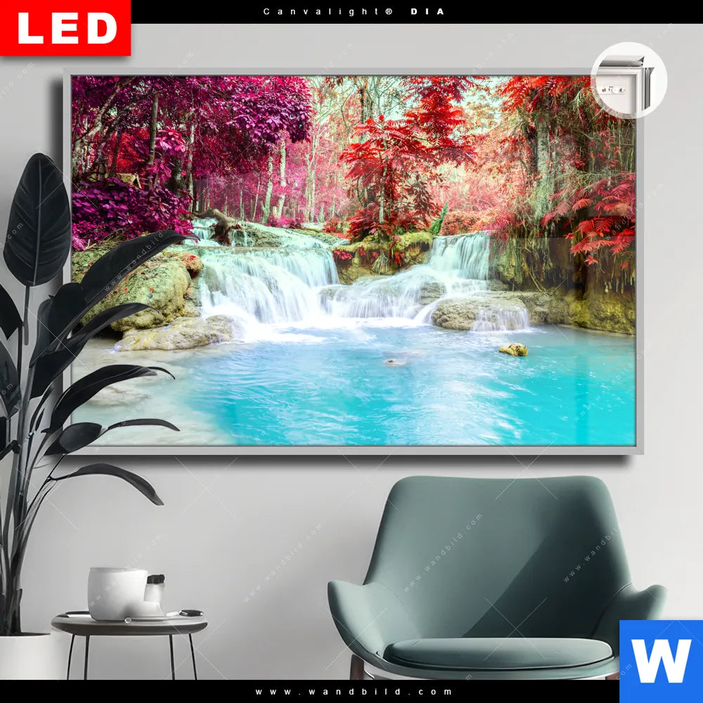 Canvalight® DIA Leuchtbild | Wald & Wasserfall No. 3 | Querformat