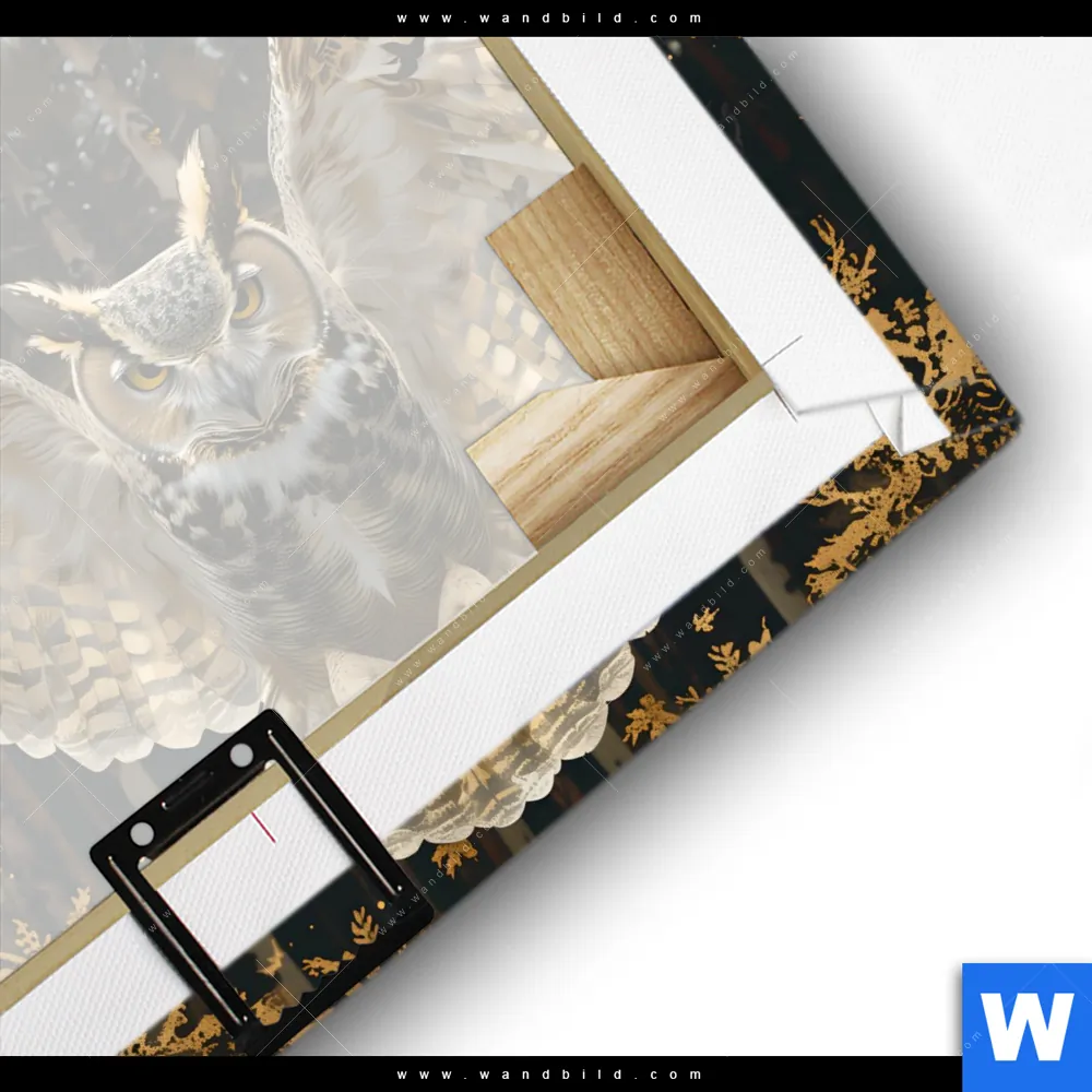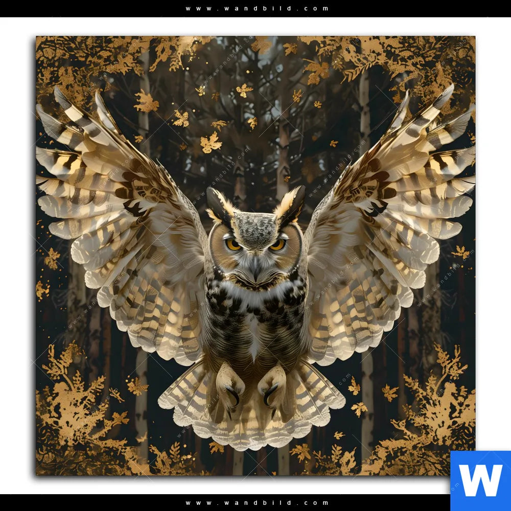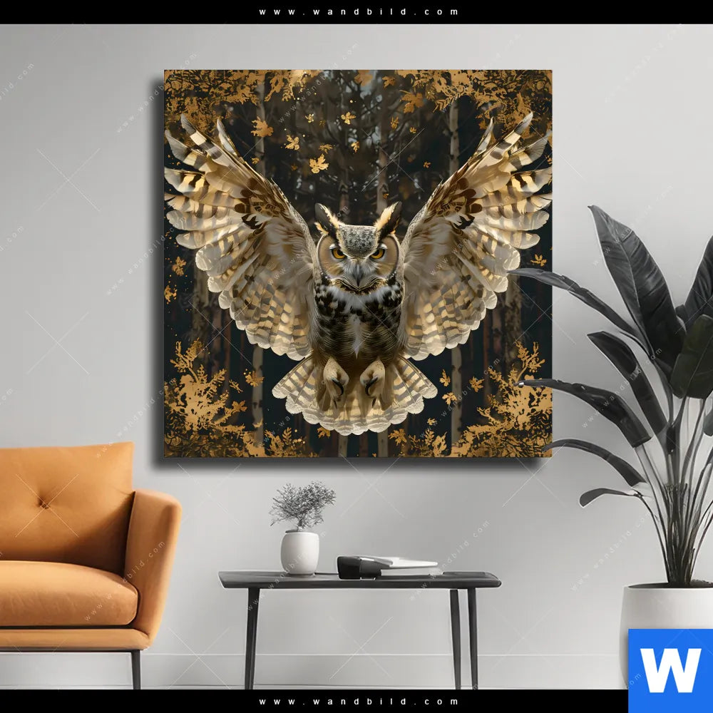 Leinwandbild | Eule inmitten goldener Blätter | Quadrat