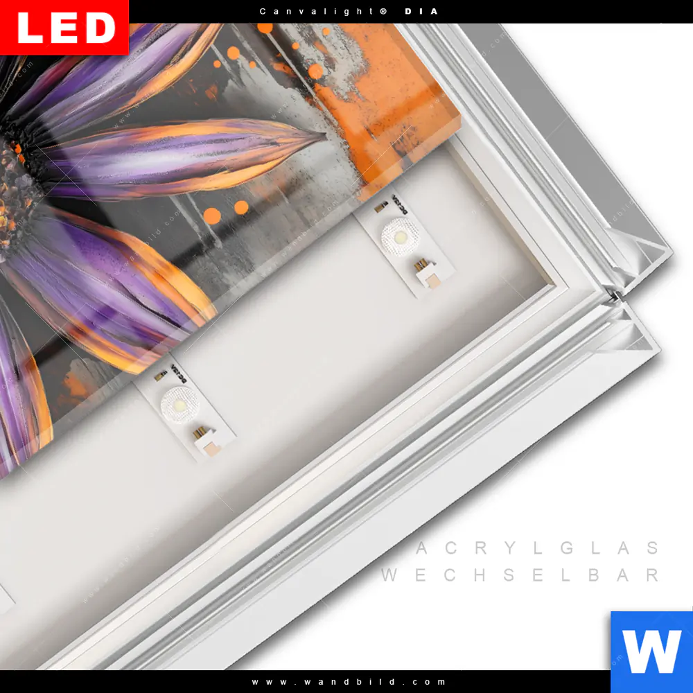 LED-Glasbild mit austauschbarem Acrylglas-Druck (Wechselbild)