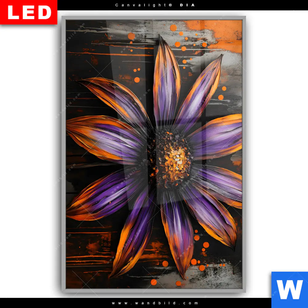 Canvalight® DIA Leuchtbild | Abstrakte Blume in Orange & Lila | Hochformat