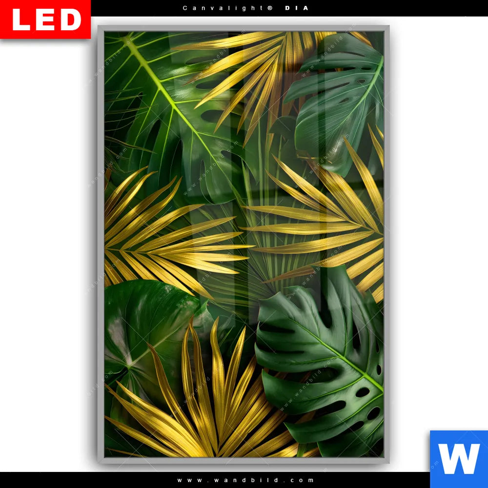 Canvalight® DIA Leuchtbild | Blätter Gold Grün | Hochformat