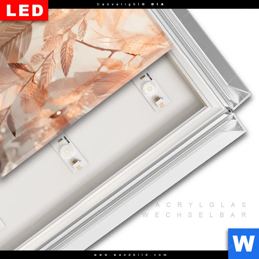 LED-Glasbild mit austauschbarem Acrylglas-Druck (Wechselbild)
