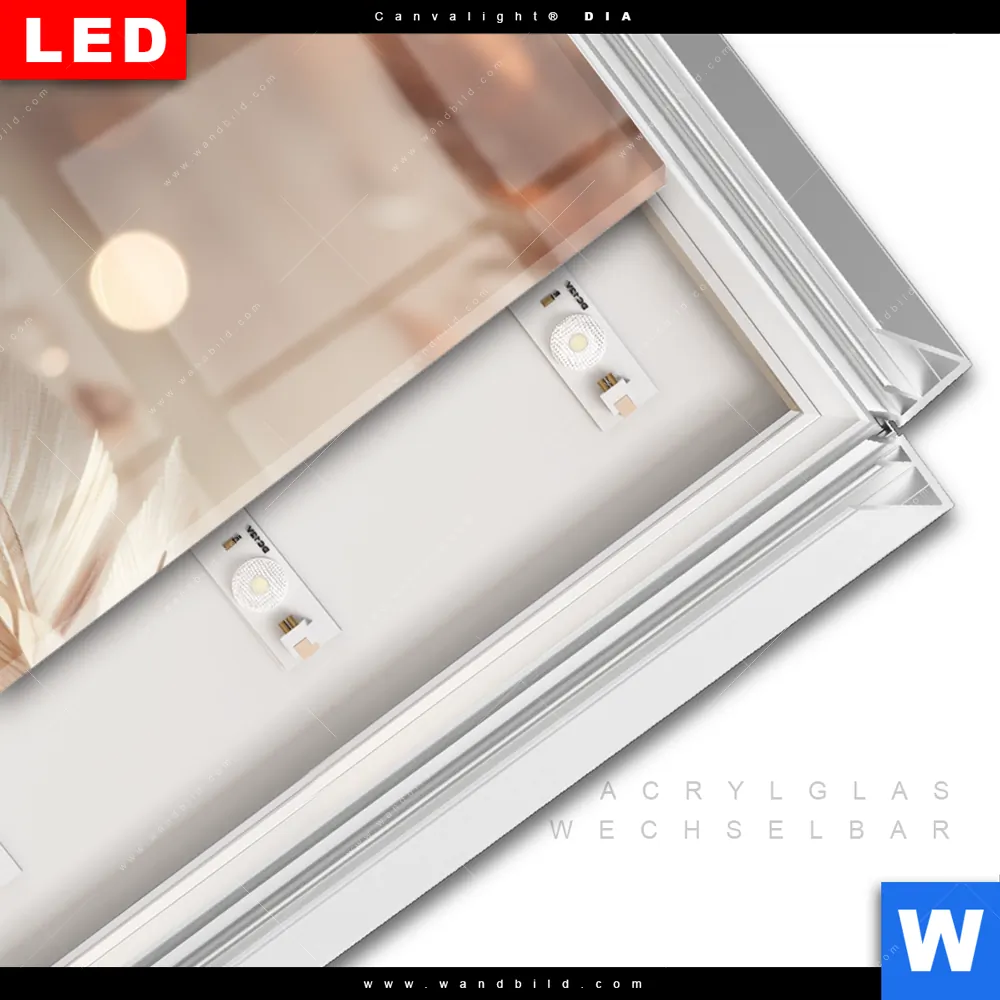 LED-Glasbild mit austauschbarem Acrylglas-Druck (Wechselbild)