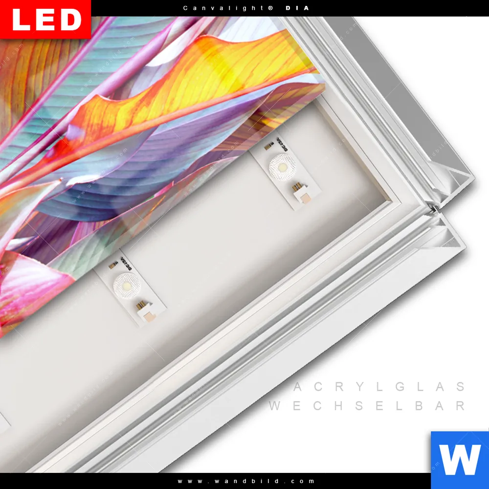 LED-Glasbild mit austauschbarem Acrylglas-Druck (Wechselbild)