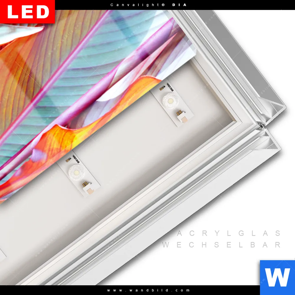 LED-Glasbild mit austauschbarem Acrylglas-Druck (Wechselbild)