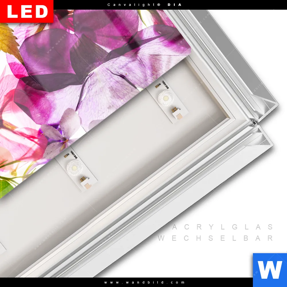 LED-Glasbild mit austauschbarem Acrylglas-Druck (Wechselbild)