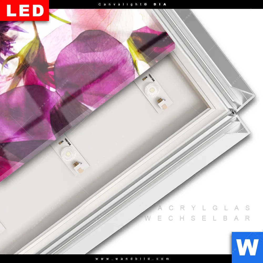 LED-Glasbild mit austauschbarem Acrylglas-Druck (Wechselbild)