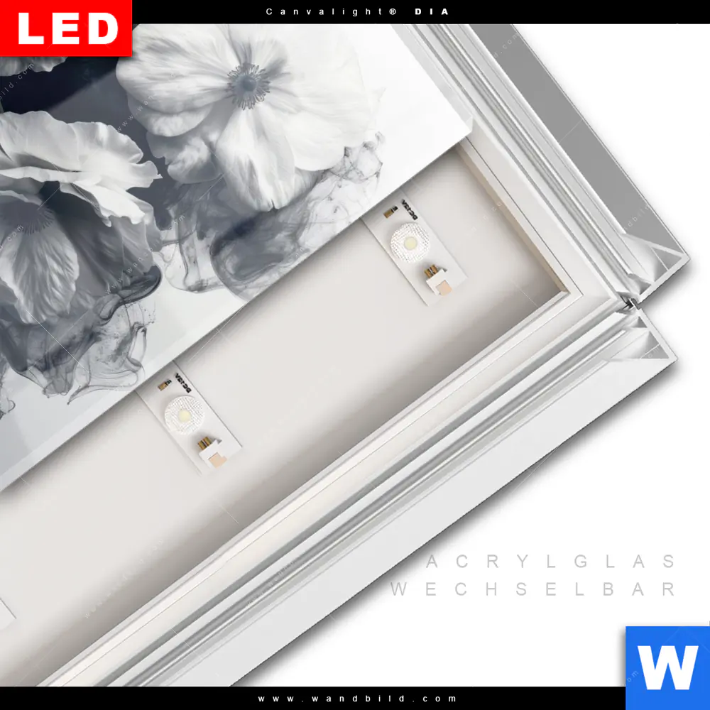 LED-Glasbild mit austauschbarem Acrylglas-Druck (Wechselbild)
