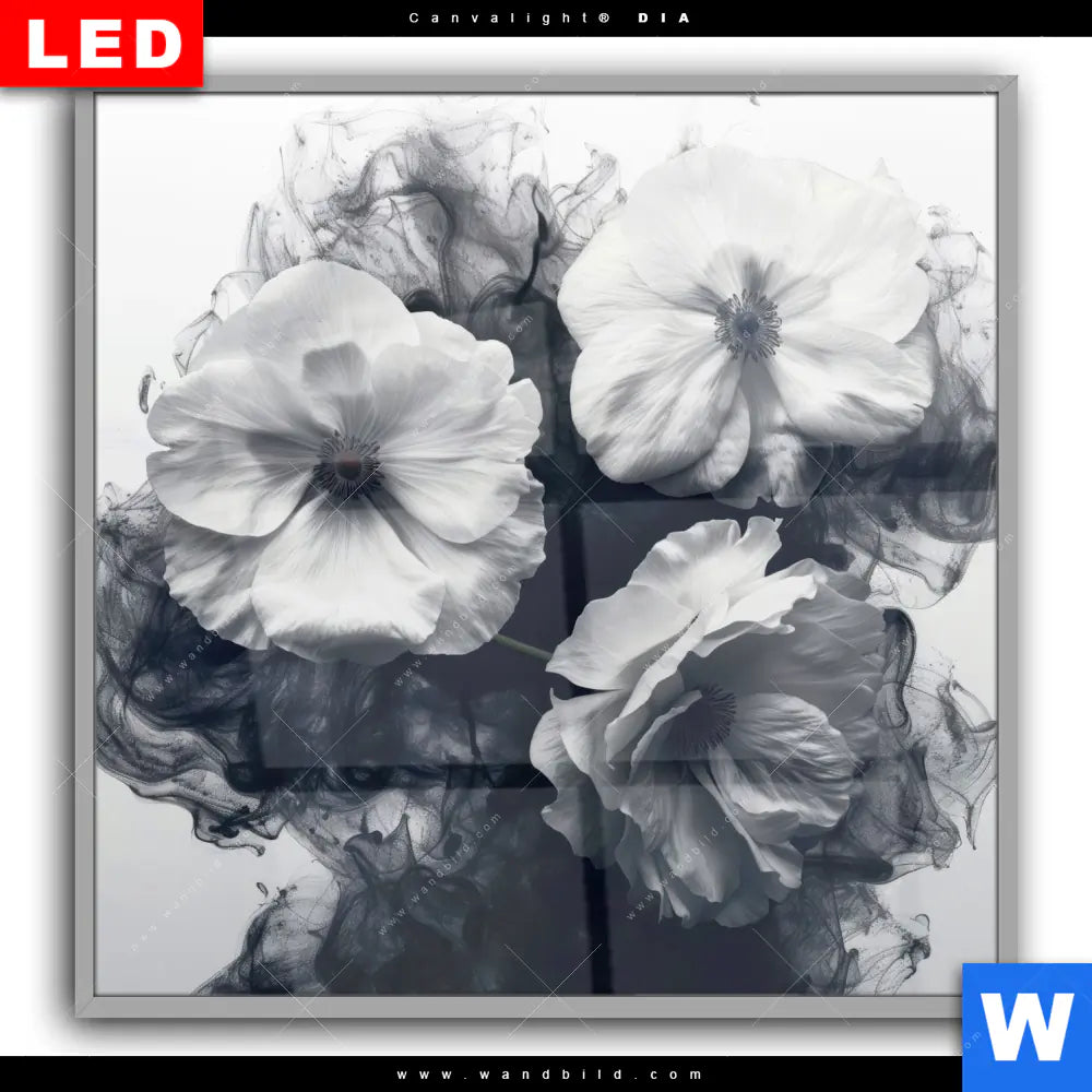 Canvalight® DIA Leuchtbild | Blumen im schwarzen Farbnebel | Quadrat
