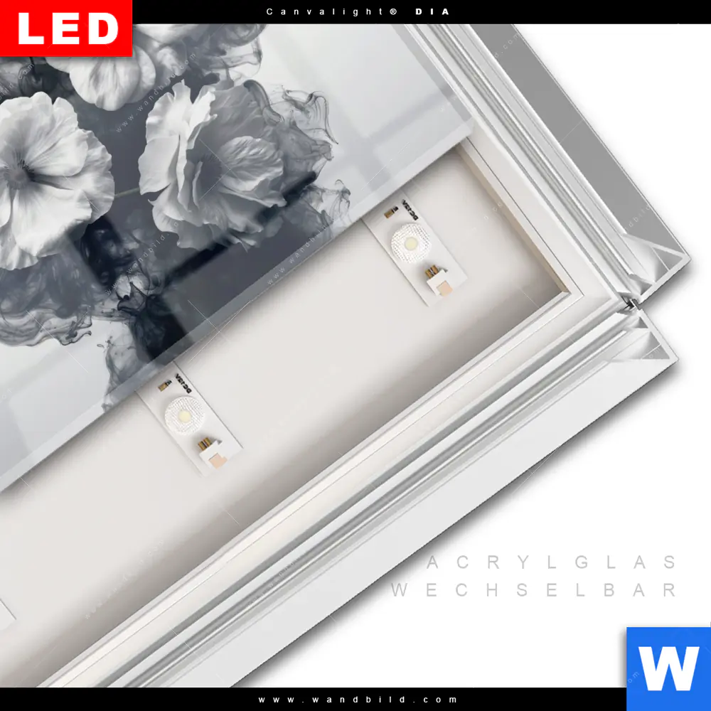LED-Glasbild mit austauschbarem Acrylglas-Druck (Wechselbild)