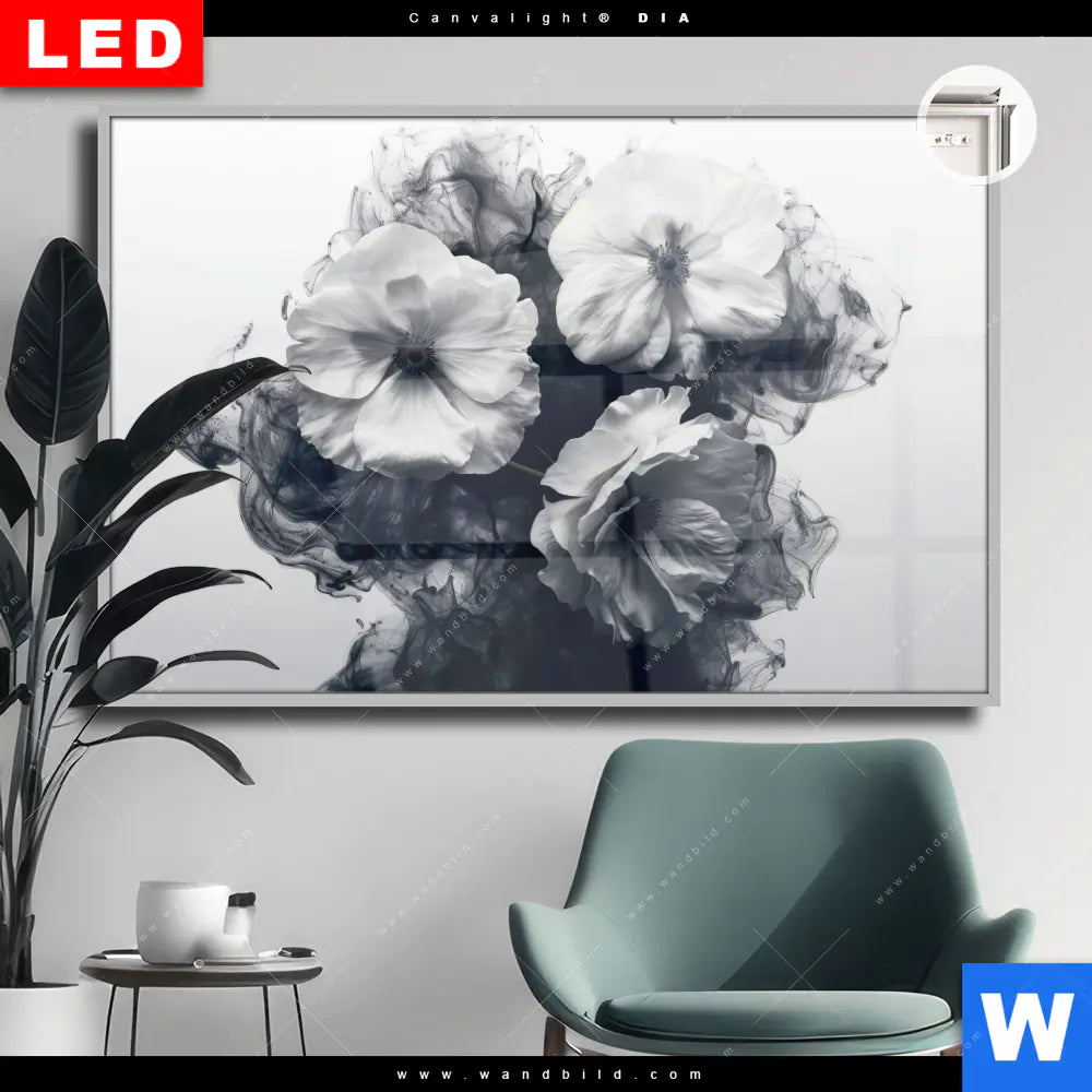 Canvalight® DIA Leuchtbild | Blumen im schwarzen Farbnebel | Querformat