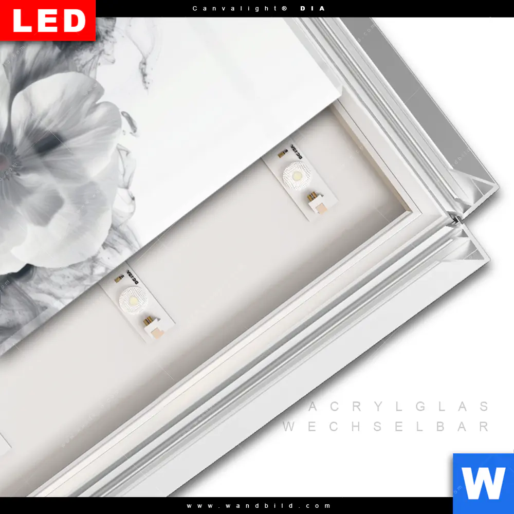LED-Glasbild mit austauschbarem Acrylglas-Druck (Wechselbild)