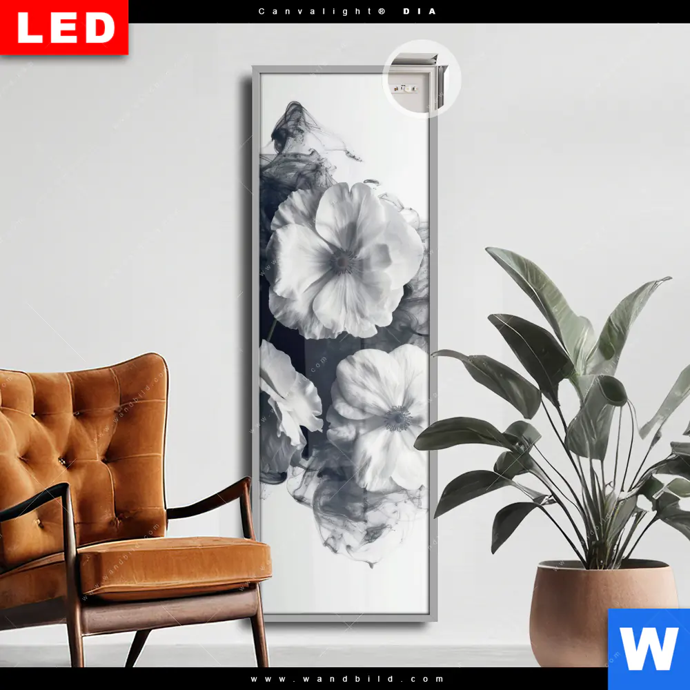 Canvalight® DIA Leuchtbild | Blumen im schwarzen Farbnebel | Schmal