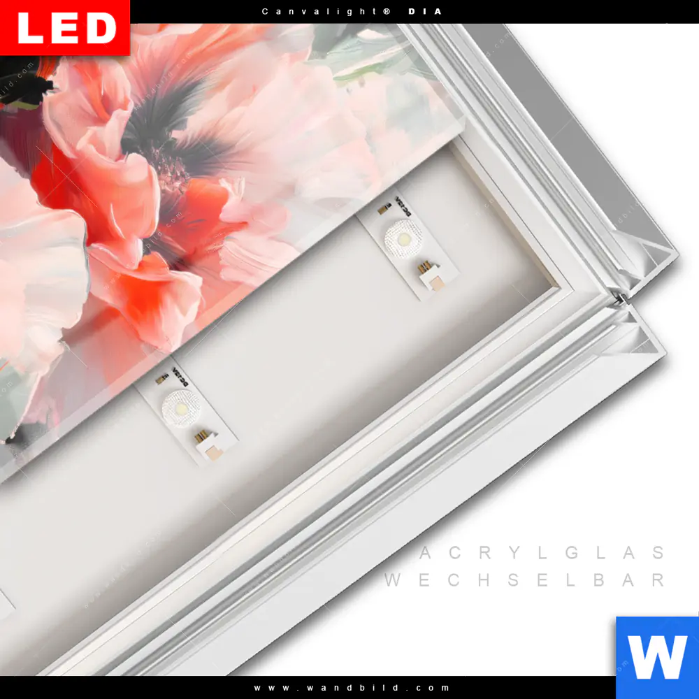 LED-Glasbild mit austauschbarem Acrylglas-Druck (Wechselbild)