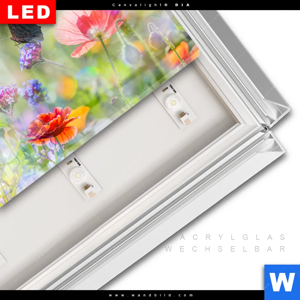 LED-Glasbild mit austauschbarem Acrylglas-Druck (Wechselbild)