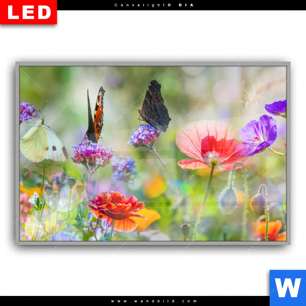 Canvalight® DIA Leuchtbild | Blumenwiese mit Schmetterlingen | Querformat