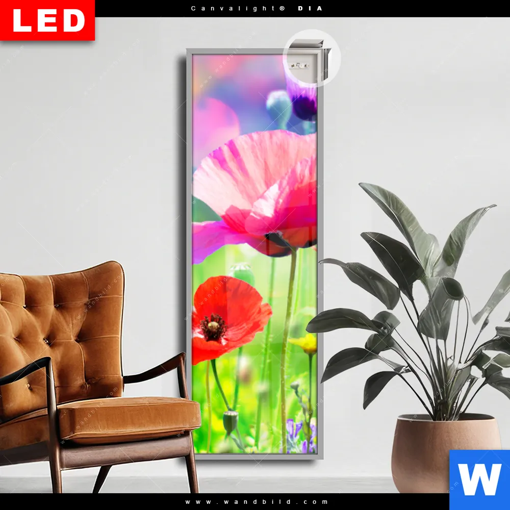 Canvalight® DIA Leuchtbild | Bunte Mohnblumen | Schmal